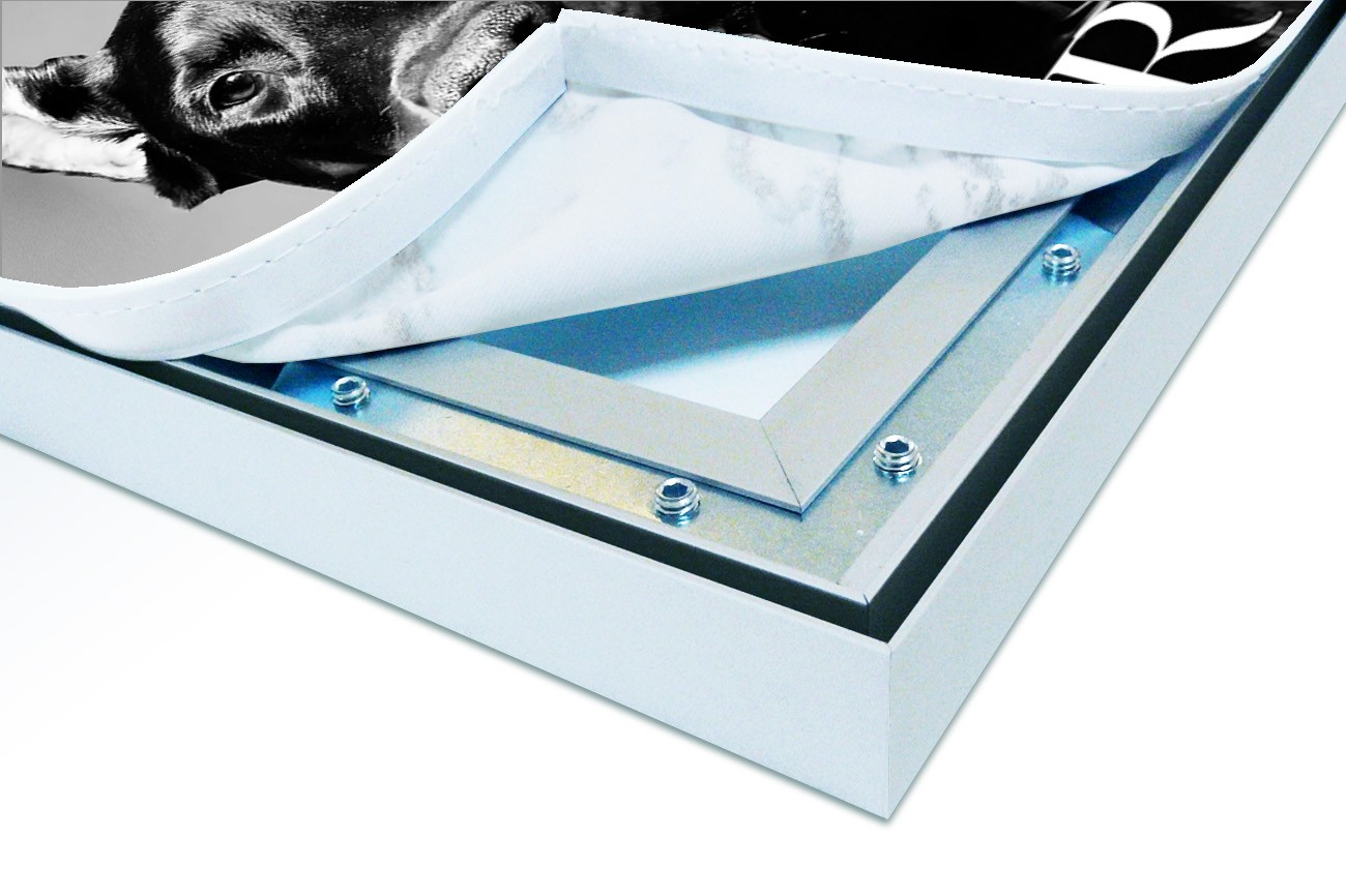 Het aluminium XL Wall Art frame is vanaf de zijde gezien 25 mm hoog, vanaf de voorzijde van de XL Wall Art zie je slechts een aluminium rand van circa 1 mm. De print wordt d.m.v. de sublimatie methode in en op het XL Wall Art doek (220 grams decostof) aangebracht en waarna het doek aan de achterzijde wordt voorzien van een rubber pees. Hierdoor is het werk gemakkelijk in het XL Wall Art frame te plaatsen.