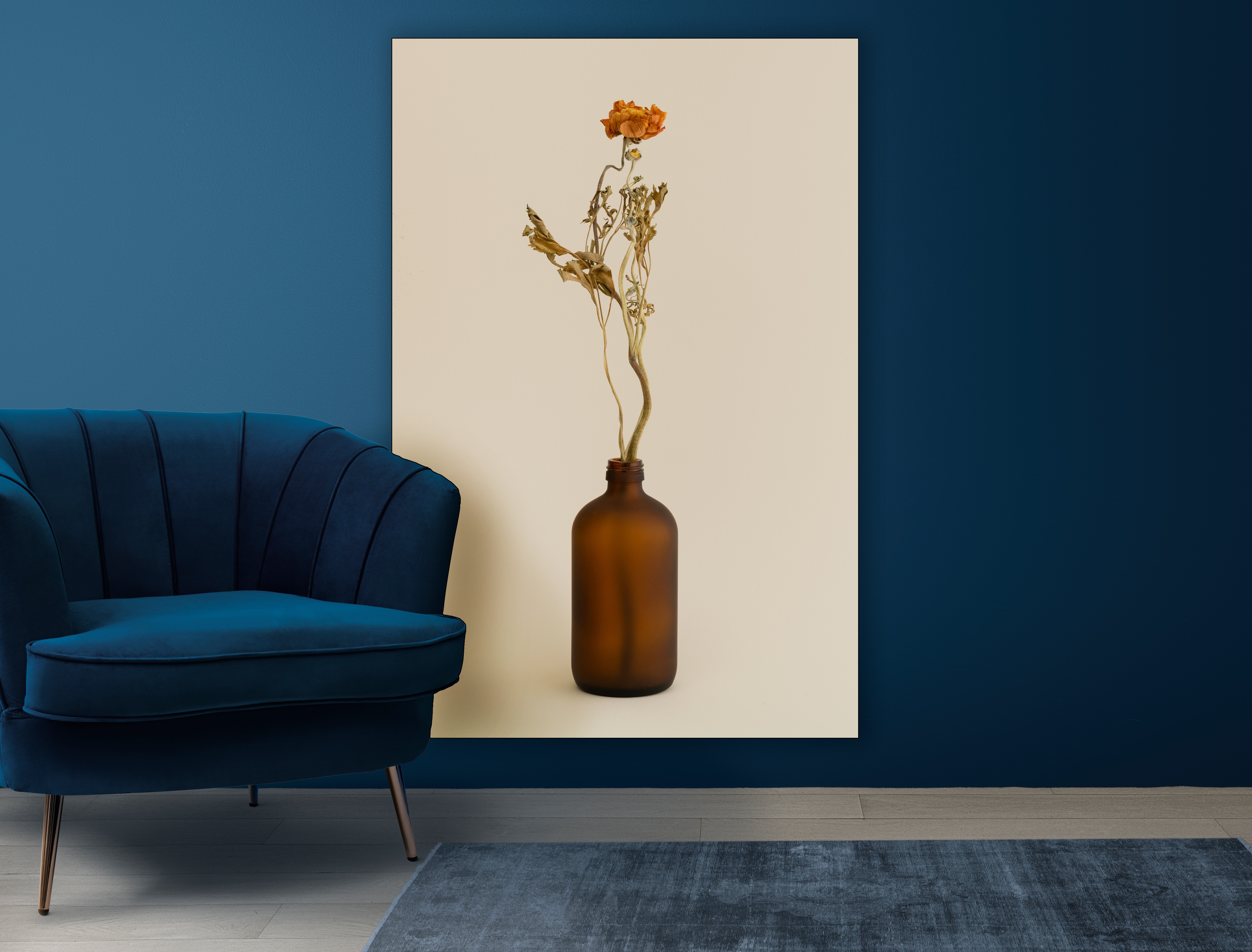 Fotografie van moderne stillevens zijn op dit moment heel populair. In de 17e eeuw werden dit soort schilderijen vaker gebruikt om het huis op te fleuren. Het kopen van een schilderij met stillevens was vaak namelijk goedkoper dan het kopen van porselein of exotische bloemen. De kleuren compositie heeft een hele neutrale uitstraling, die met de warme kleuren van de achtergrond samenvallen. Het geheel heeft een hele zachte belichting wat vaker werd gebruikt in stillevens. Dit werk is beschikbaar in verschillende formaten op textieldoek inclusief textielframe.