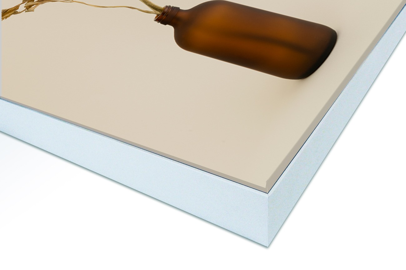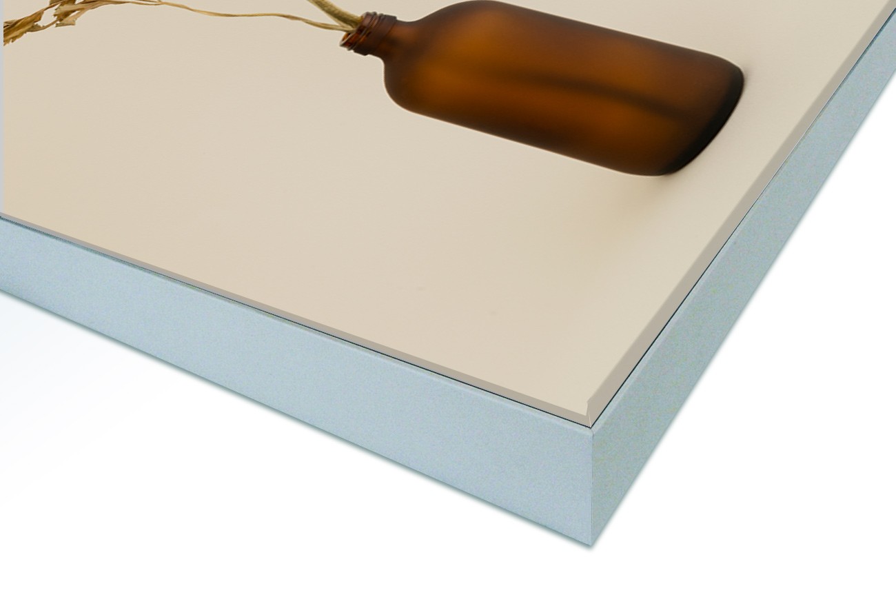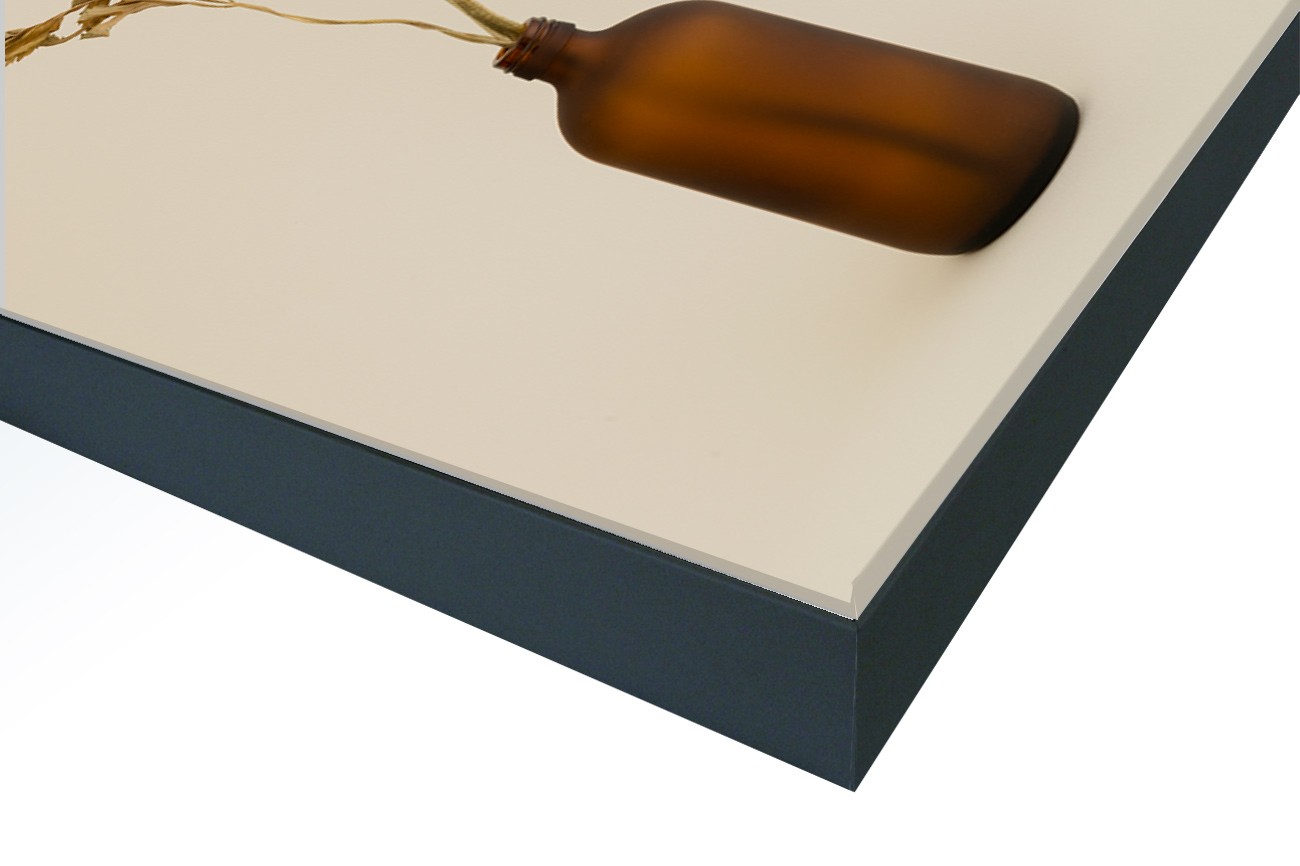 Het aluminium XL Wall Art frame is vanaf de zijde gezien 25 mm hoog, vanaf de voorzijde van de XL Wall Art zie je slechts een aluminium rand van circa 1 mm. De print wordt d.m.v. de sublimatie methode in en op het XL Wall Art doek (220 grams decostof) aangebracht en waarna het doek aan de achterzijde wordt voorzien van een rubber pees. Hierdoor is het werk gemakkelijk in het XL Wall Art frame te plaatsen.