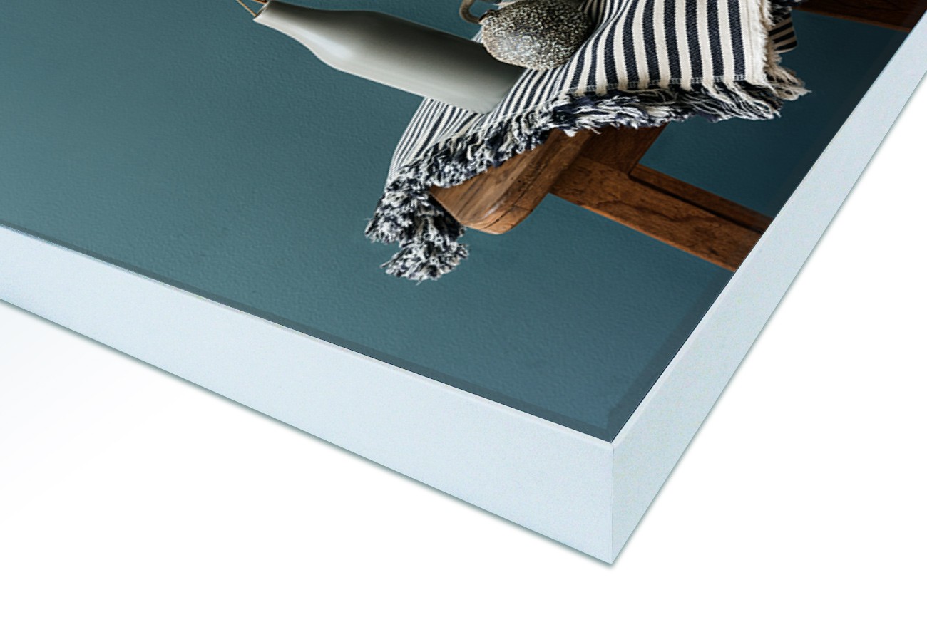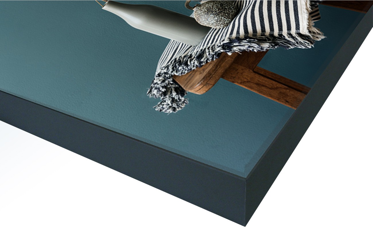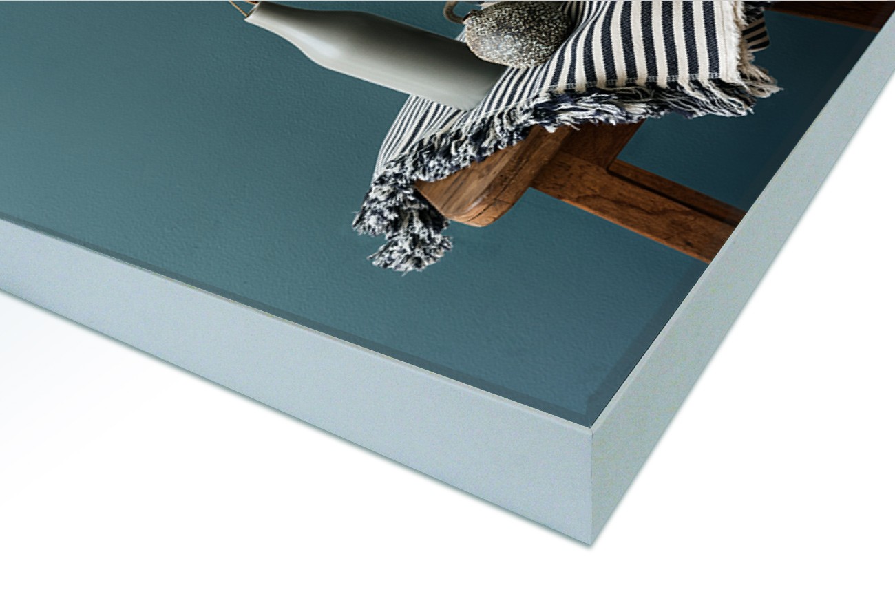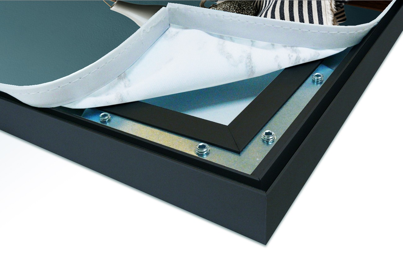Het aluminium XL Wall Art frame is vanaf de zijde gezien 25 mm hoog, vanaf de voorzijde van de XL Wall Art zie je slechts een aluminium rand van circa 1 mm. De print wordt d.m.v. de sublimatie methode in en op het XL Wall Art doek (220 grams decostof) aangebracht en waarna het doek aan de achterzijde wordt voorzien van een rubber pees. Hierdoor is het werk gemakkelijk in het XL Wall Art frame te plaatsen.