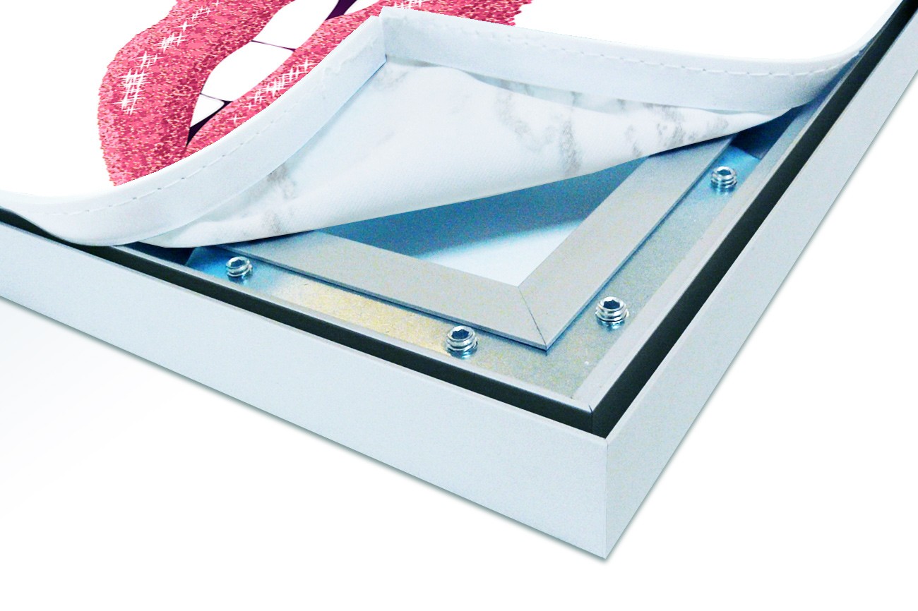 Het aluminium XL Wall Art frame is vanaf de zijde gezien 25 mm hoog, vanaf de voorzijde van de XL Wall Art zie je slechts een aluminium rand van circa 1 mm. De print wordt d.m.v. de sublimatie methode in en op het XL Wall Art doek (220 grams decostof) aangebracht en waarna het doek aan de achterzijde wordt voorzien van een rubber pees. Hierdoor is het werk gemakkelijk in het XL Wall Art frame te plaatsen.