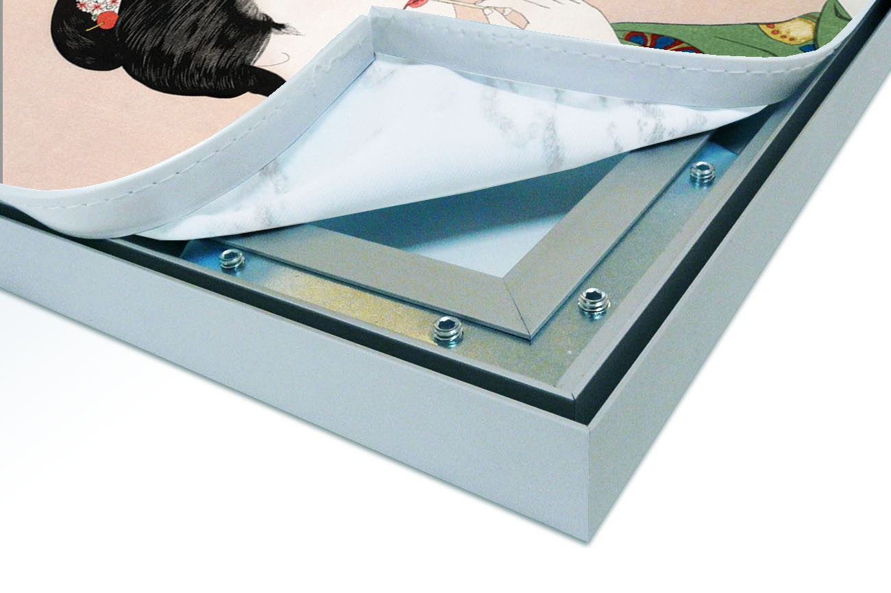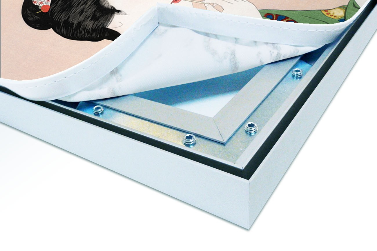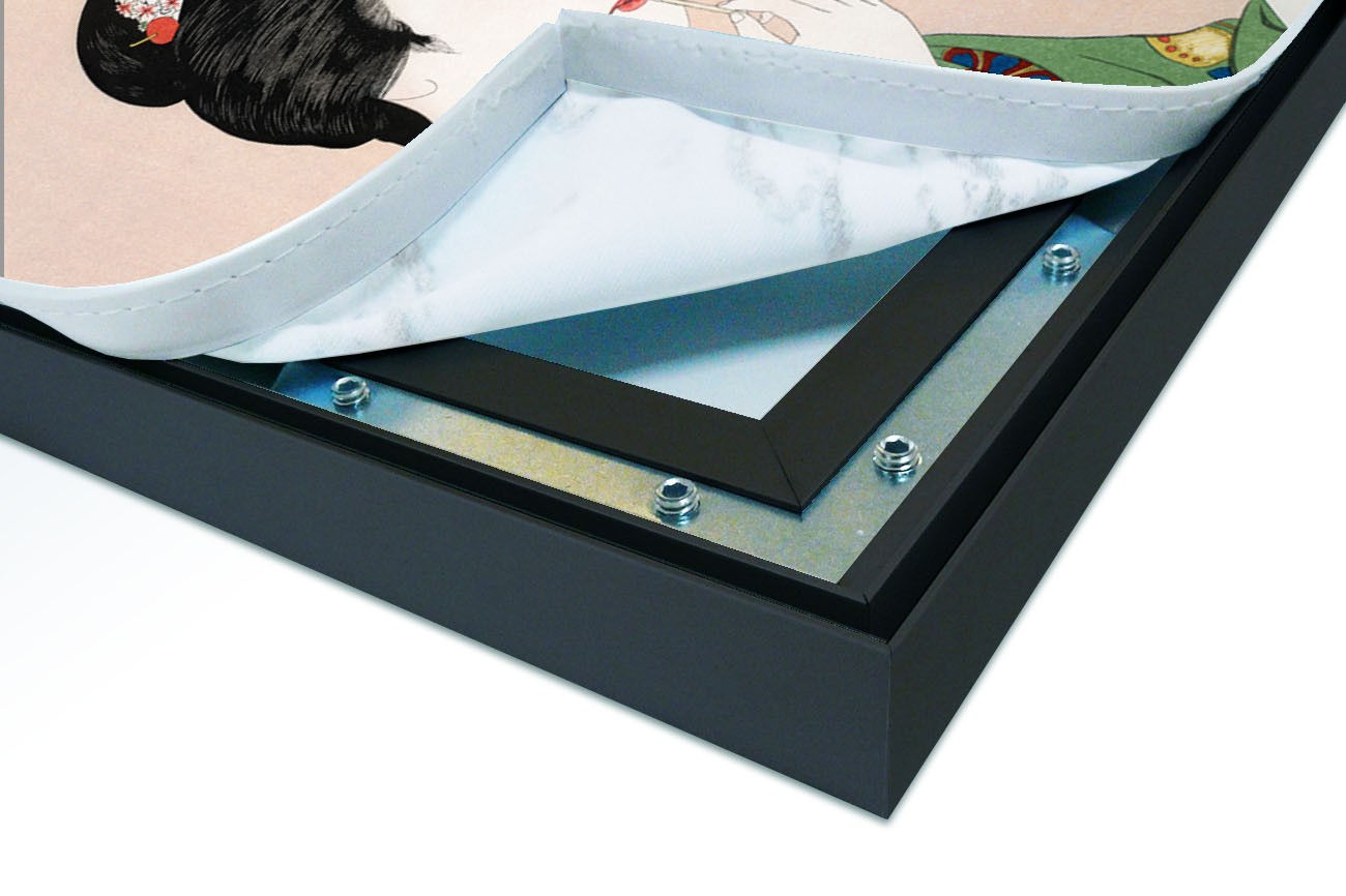 Het aluminium XL Wall Art frame is vanaf de zijde gezien 25 mm hoog, vanaf de voorzijde van de XL Wall Art zie je slechts een aluminium rand van circa 1 mm. De print wordt d.m.v. de sublimatie methode in en op het XL Wall Art doek (220 grams decostof) aangebracht en waarna het doek aan de achterzijde wordt voorzien van een rubber pees. Hierdoor is het werk gemakkelijk in het XL Wall Art frame te plaatsen.