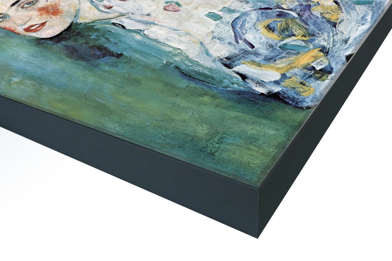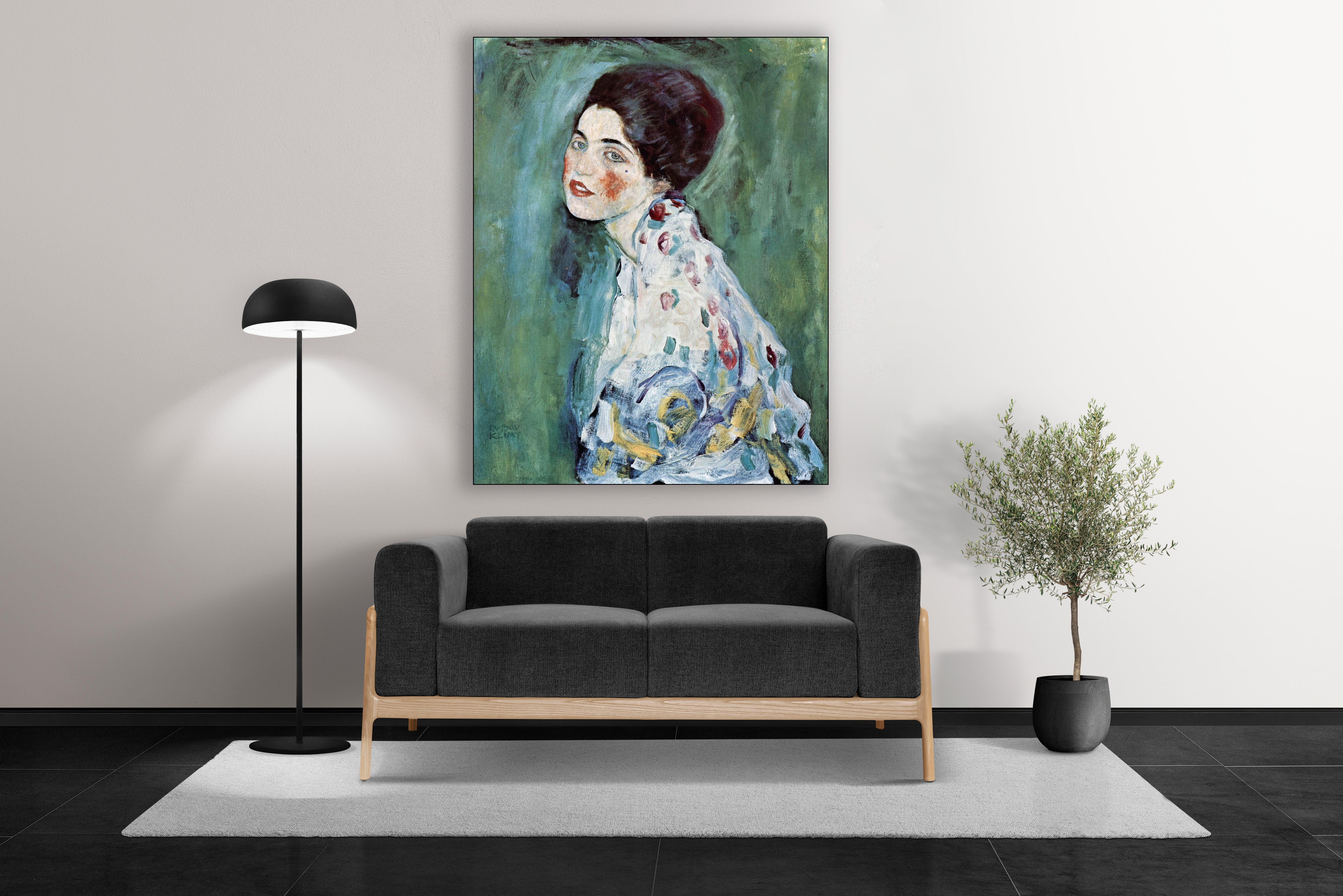 Dit werk van Gustav Klimt is geschilderd tussen 1916 en 1917. In 1996 zijn er onderzoeken gedaan naar dit werk met een speciale X-Ray. Het verdwenen werk van Klimt (portret van een jonge vrouw met sjaal en hoed) is onder de verf van dit portret aangetroffen. Het originele werk was een portret van een vrouw met wie Klimt een relatie had. Na haar overlijden in 1916 heeft hij dit nieuwe portret van een vrouw eroverheen geschilderd. Dit werk is beschikbaar in verschillende formaten op textieldoek inclusief textielframe.